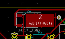 В наличии имелись два LM317 в корпусе D2pack, т.е. SMD. Под него была сделана площадка: